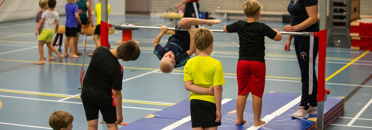 Vind je het leuk om te zwaaien, te springen en te zweven? Dan is turnen echt iets voor jou! Door te trainen word je steeds sterker en beter. Turnen is een sport met uitdaging en is heel spectaculair. Jij kunt het ook! Iedere jongen kan turnen, je hoeft niet meteen een ster te zijn, het gaat er om dat je het leuk vindt. Je kunt kiezen voor recreatiegym of wedstrijdturnen. Zo leer je op je eigen niveau om salto’s te springen, handstanden en reuzenzwaaien te maken. Bij het jongens- en herenturnen zijn zes toestellen belangrijk: vloer, voltige, ringen, sprong, brug en rekstok. Om al deze toestellen goed te kunnen, leer je te springen, te steunen en te hangen, toch zijn alle toestellen heel verschillend. Dat maakt het juist zo leuk. Als het jou wat lijkt, kom dan eens langs en doe mee. De eerste twee lessen zijn gratis.